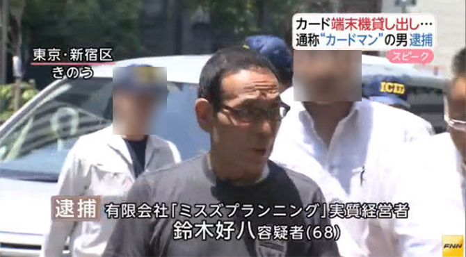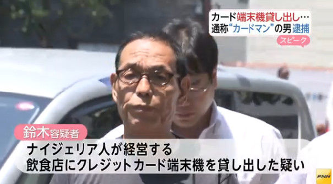 飲食店コンサルタント会社の実質経営者・鈴木好八容疑者(68)は、東京・新宿歌舞伎町のナイジェリア人が経営する飲食店に、クレジットカード端末機を貸し出した疑いが持たれている。