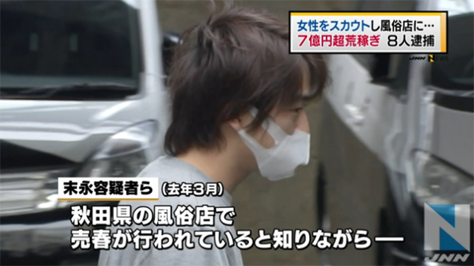 逮捕されたのは新宿区の無職・末永奨容疑者(31)ら8人で、去年3月、秋田県の風俗店で売春が行われていると知りながら、JR池袋駅周辺で24歳の女性を勧誘し、店に紹介したなどの疑いが持たれています。