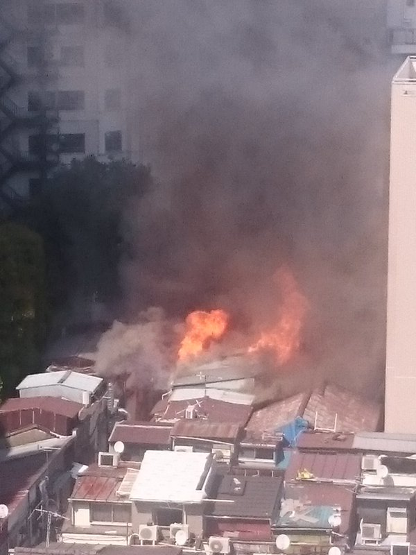 東京・歌舞伎町の新宿ゴールデン街で火事があり、現在も激しく延焼中。