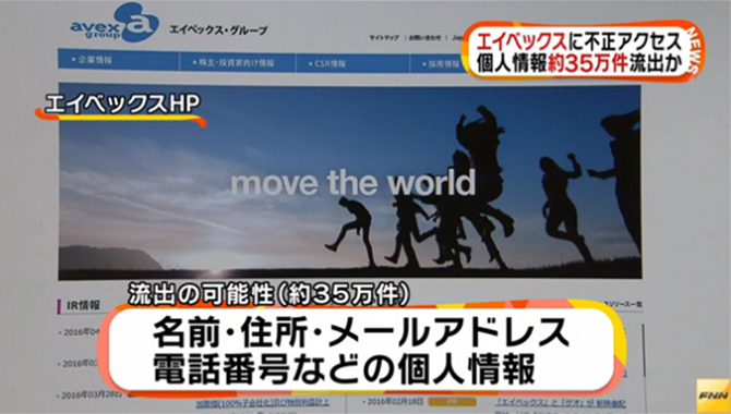 エイベックスによりますと、今月25日、会社のウェブサイトに外部から不正なアクセスがあったことをシステムが検知し、調査したところ、およそ35万件の個人情報が流出したおそれがあることが分かったということです。