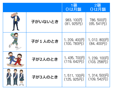 年金額は、自営業など国民年金加入者が対象の障害基礎年金で、重度の1級が97万円、2級は78万円余。18歳未満の子どもがいれば加算がある。サラリーマンらの厚生年金は、これに報酬比例分などが加わる。