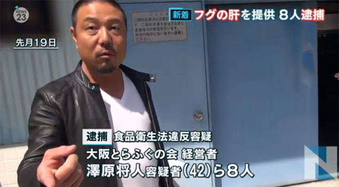 逮捕容疑は今年3月28日、本店と3店舗で食品として販売が禁止されているフグの肝を客に提供したとしている。いずれも刺し身として出していた。