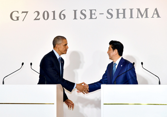 首相は、同日夜に来日して三重県のサミット会場に入ったオバマ氏と約1時間会談した。会談後の共同記者会見で、安倍首相は19日に米軍属の男が女性の死体遺棄容疑で逮捕された事件に関し、「オバマ大統領に日本の首相として断固抗議した」と述べた。