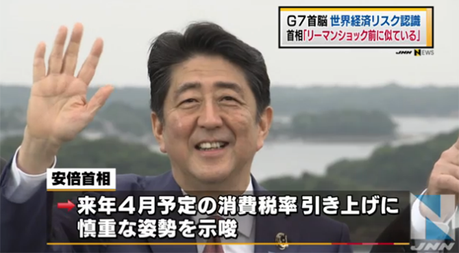 サミットの協議で安倍総理は、世界経済の現状について「2008年に起きたリーマンショック前の状況に似ている」という認識を示し、経済の危機を防ぐためにG7の協調が必要だと訴えました。
