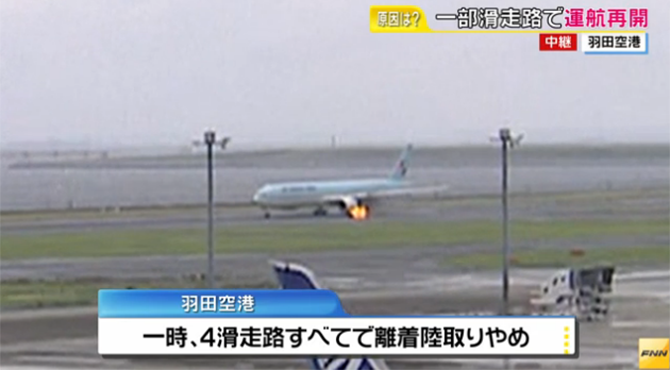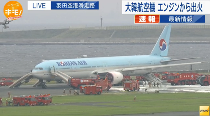 羽田空港で大韓航空機エンジンから出火 全員脱出・けがなし