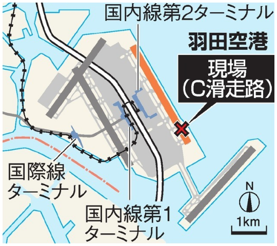 国土交通省東京空港事務所によると、羽田空港は27日午後1時半現在、大韓航空機が停止しているC滑走路が閉鎖され、ほかの3本の滑走路も運用を見合わせている。