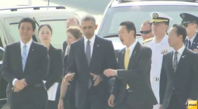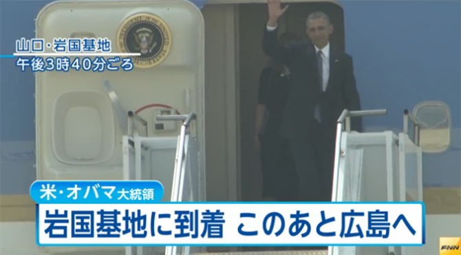 オバマ大統領、アメリカ軍の岩国基地に到着