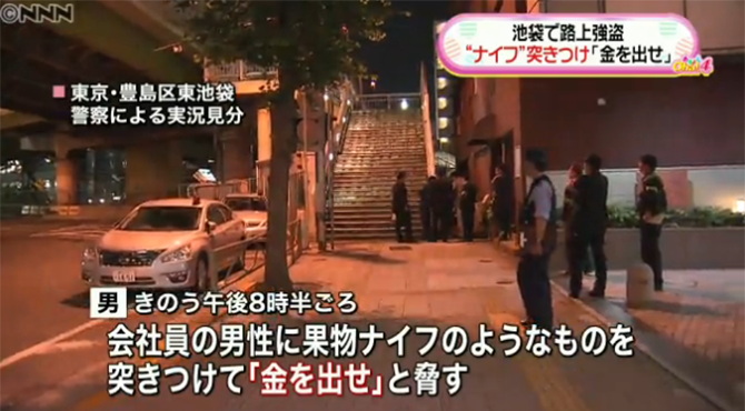 8日夜、東京・豊島区の路上で会社員が若い男に刃物のようなものを突きつけられ、現金などを奪われる事件が起きた。