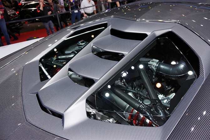 ミッドシップには、『アヴェンタドール』用がベースの6.5リットルV型12気筒ガソリン自然吸気エンジンを搭載。最大出力は770hpと、ランボルギーニ史上最強のパワーへ引き上げられた。パワーウェイトレシオは、1.97kg/hp。この結果、センテナリオは0-100km/h加速2.8秒、最高速350km/hオーバーという圧倒的パフォーマンスを実現した。