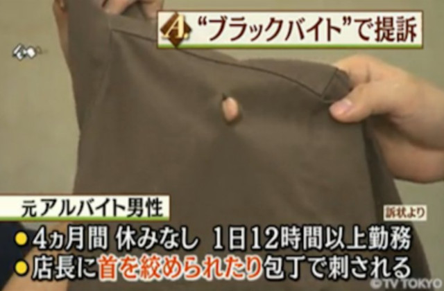 ユニオン側は今回、元店長らの暴力行為についても新たに告発。これまで公表されていた長時間労働や自腹購入に加えて、「調理用包丁で胸や腕などを刺す」「殴る、首を絞めるなどの日常的暴行」など、元店長らの暴行・殺人未遂行為についても明らかにされました。同日行われた記者会見では、包丁で刺された傷跡や、穴の空いた制服の写真なども公開されています。