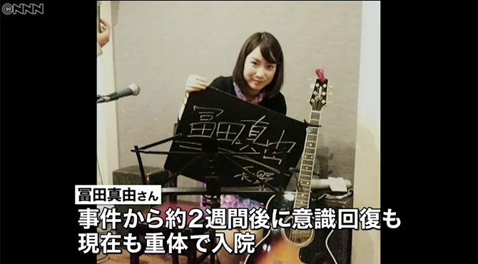 被害にあった冨田真由さんは、事件から約2週間後に意識を回復したが現在も重体で入院している。