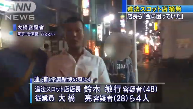 東京・上野のビルで違法パチスロ店を経営していたとして、店長の男らが逮捕された。