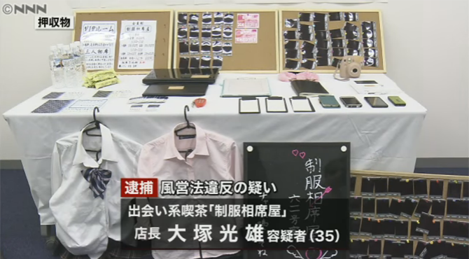 同店は、個室内で制服姿の少女らと会話したり食事したりすることを売りにしていたが、実際にはわいせつ行為が横行。「裏オプション」と呼ばれ、少女らが数万円を受け取っていた。少女は50~60人在籍しており、多くが18歳未満だったとみられる。少女も客であるとの建前を取っており、大塚容疑者は「客という名目にすれば取り締まられないと思った」と話している。