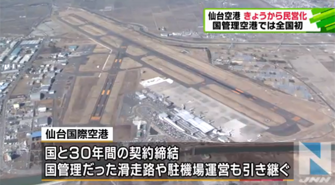 全国初、仙台国際空港、きょうから民営化