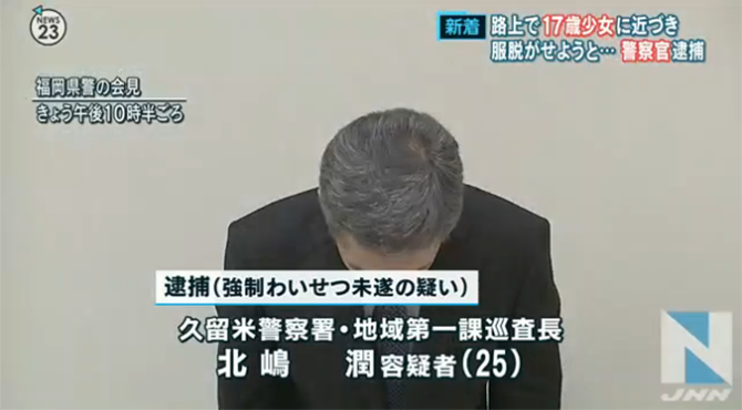 逮捕されたのは久留米警察署・地域第一課に所属する巡査長・北嶋潤容疑者(25)です。北嶋容疑者は今年4月、久留米市の路上で歩行者の17歳の少女に背後から近づき、いきなりズボンや上着を脱がそうとした疑いがもたれています。