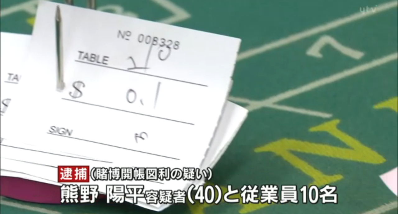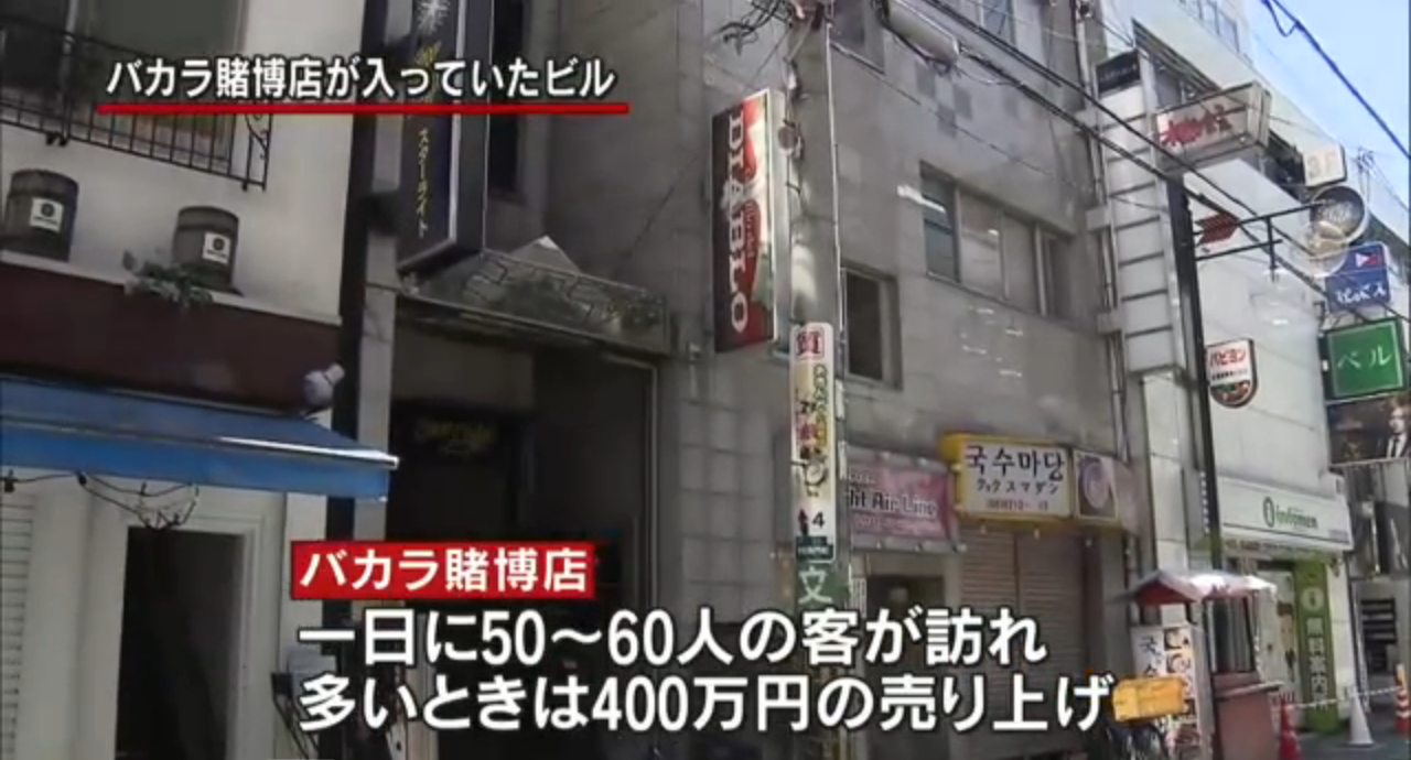 熊野容疑者らの逮捕容疑は、5日午後4時50分ごろ、同店内でバカラ賭博場を開き、客から賭け金の5%を受け取ったとしている。