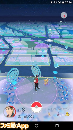 本作はスマホの位置情報を利用して、現実世界でポケモン探しの旅が楽しめるのが特徴。起動中にポケモンが自分の近くに現れるとスマホが振動してお知らせ。スマホを周囲に向けてポケモンを見つけたら、画面上のポケモンボールをスワイプして投げることでポケモンを捕まえらえる。