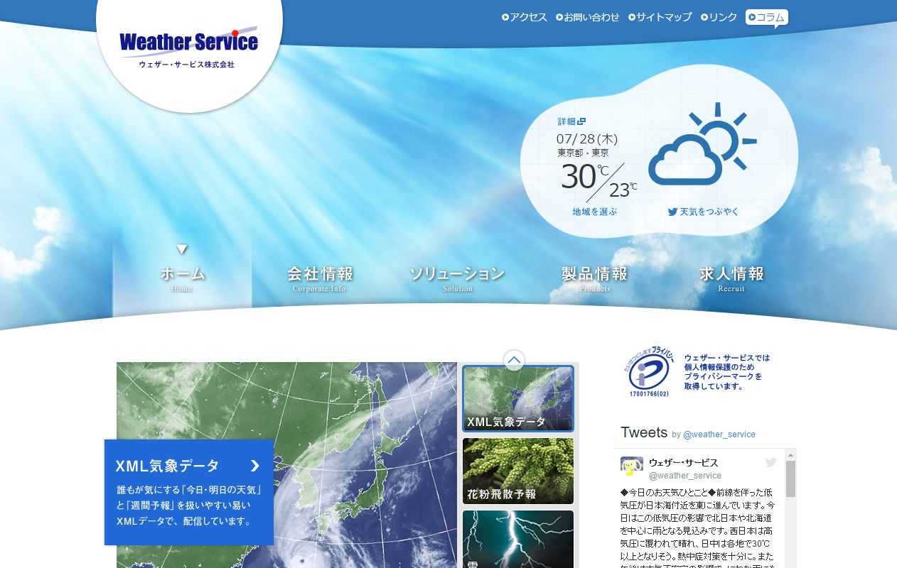 気象情報提供サービス業者。付加価値性の高い気象情報サービスの提供で事業を拡大し、千葉市産業振興財団主催の第三回ベンチャーカップで優秀賞を受賞するなど注目を集めた。花粉情報の提供分野が当社の事業拡大に大きく貢献し、花粉飛散シミュレータを使って予測する最先端の超高精密花粉情報が当社の大きなアピールポイントとなり、情報配信を増やした。