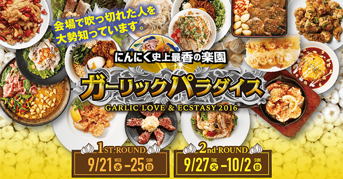 9月21日(水)から10月2日(日)まで新宿歌舞伎町・大久保公園にて開催されるフードフェス「ガーリックパラダイス2016」の出店店舗、提供メニューが発表された。