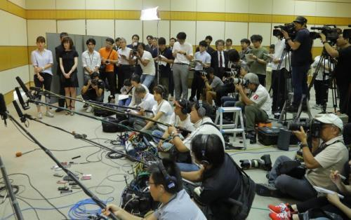 紺のスーツにネクタイを締めて会見に臨んだ山口。ジャニーズ事務所所属のタレントとしては異例の離婚会見になったことについて、「結婚した時に自分の口からご報告させていただいたので、今回自分の口でまたご報告させていただけたらと思いました」と説明した。