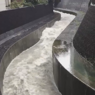 都のホームページによると、渋谷橋で観測した渋谷川の水位は午前10時40分、氾濫危険水位を超えた約4.5メートルでピークに達し、正午現在、約30センチに下降している。