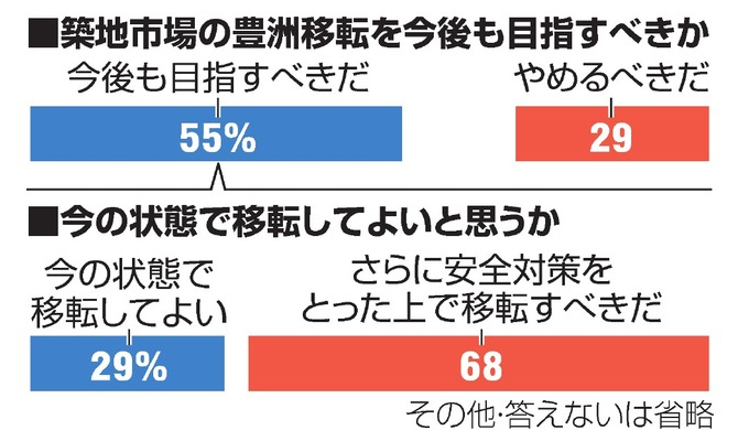 豊洲移転「さらに安全対策をとった上で移転するべきだ」68% 朝日新聞の都民世論調査