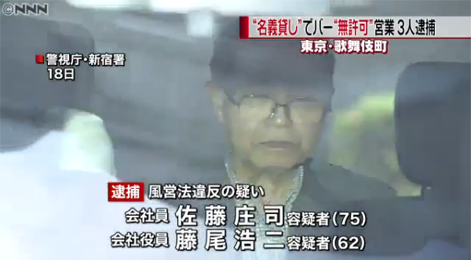 東京・歌舞伎町で、名義貸しで契約した店舗で風俗営業の許可を受けずにバーを経営していたとして、75歳の男らが風営法違反の疑いで逮捕された。