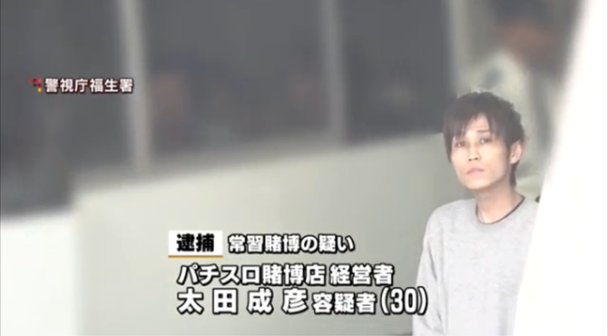 逮捕されたのは新宿区歌舞伎町のパチスロ賭博店「PANIC GOLD」の経営者・太田成彦容疑者(30)で、スロット台などを設置し、大学生の客らを相手に賭博をした疑いが持たれています。