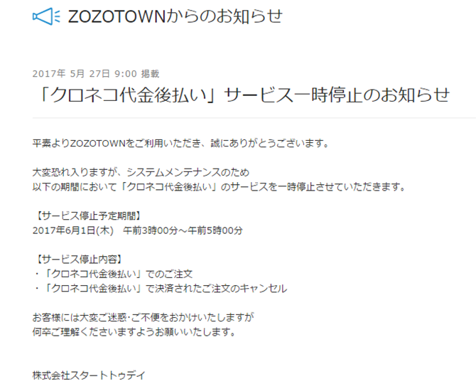 今後もZOZOTOWNをよろしくお願いいたします。